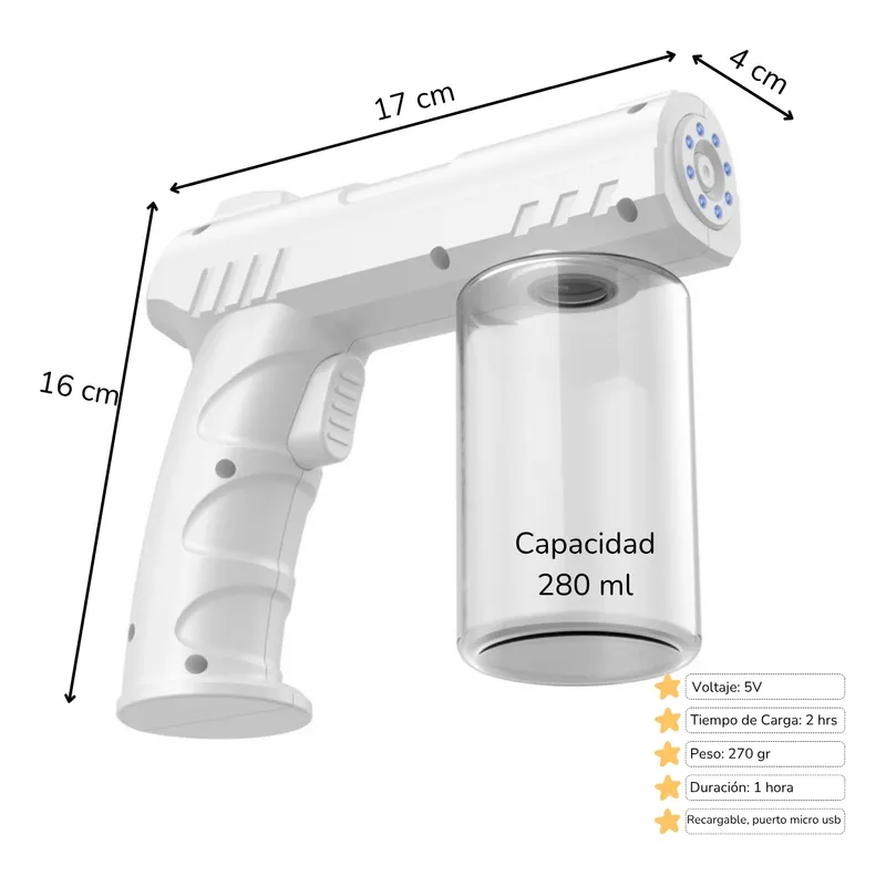 Pistolet pulvérisateur de désinfection sans fil 280 ml rechargeable par USB – جهاز تنظيف وتعقيم